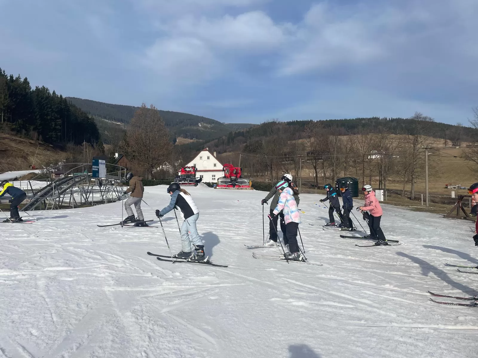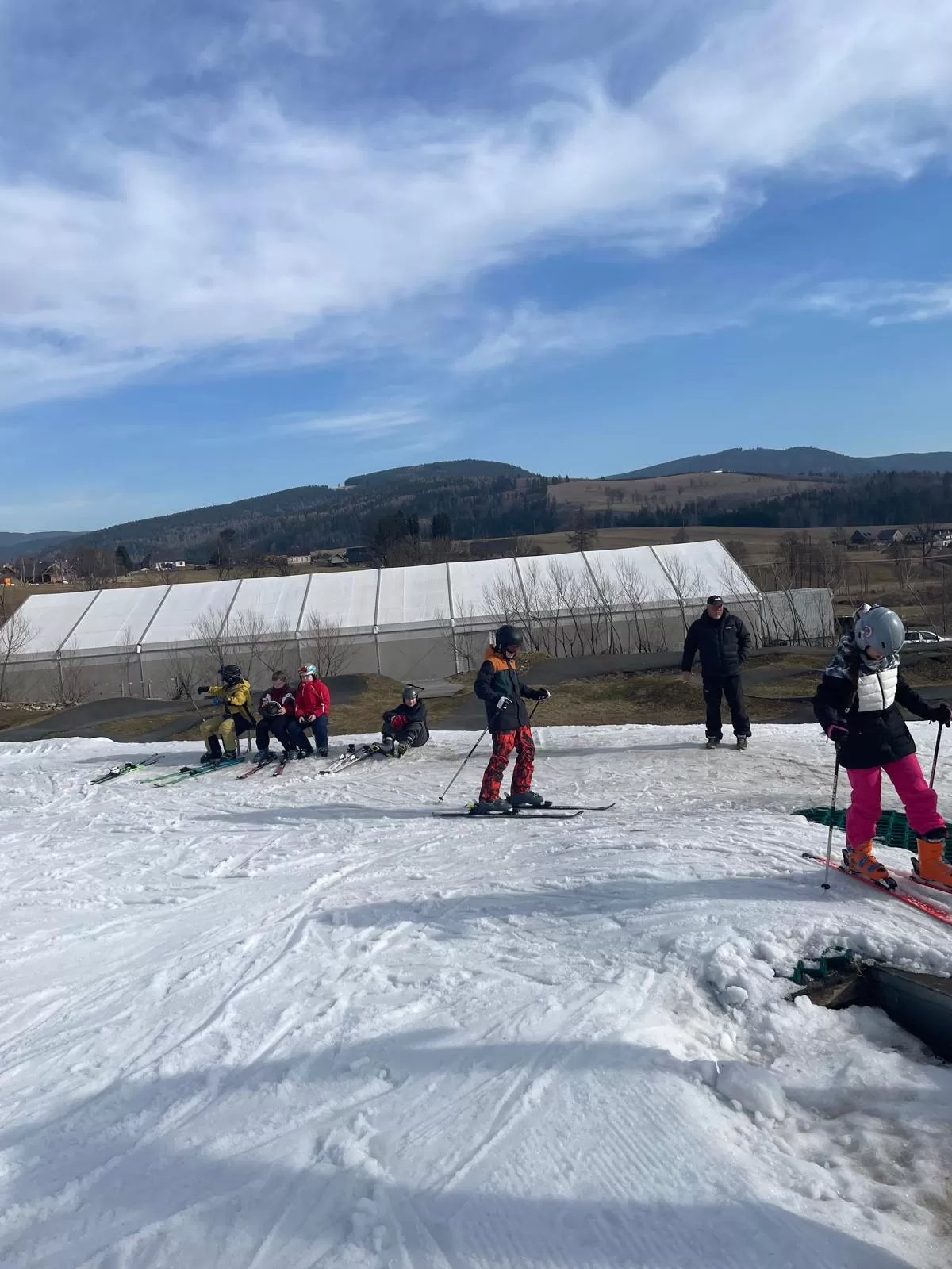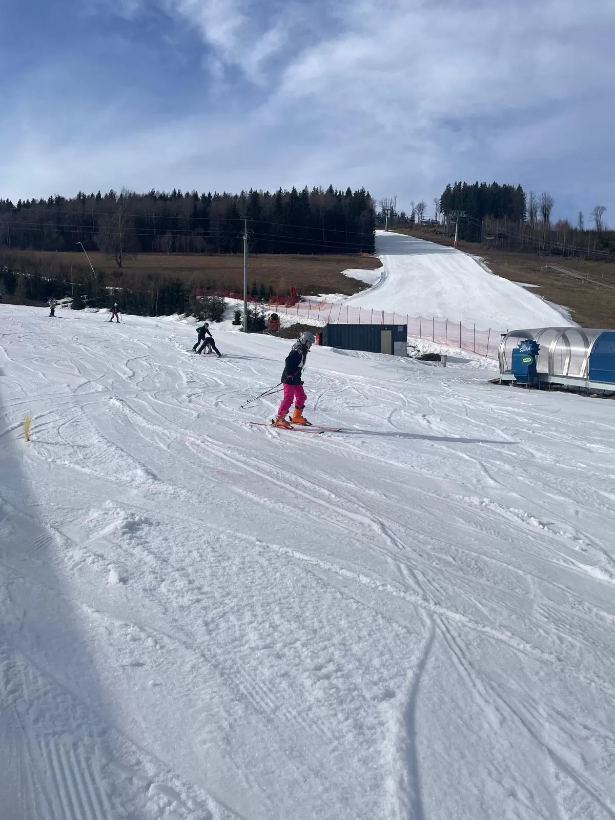 Třetí dopoledne na sjezdovce bylo opět ve znamení krásného slunečného počasí. Naši lyžníci dělají velké pokroky a svahem se řítí jako draci. Pokud vše půjde podle plánu, zítra všichni vyrazí na lanovku a velkou sjezdovku. Po sportovním dopoledni zasloužený odpočinek a relaxace v zábřežském bazénu a sauně. A zítra zase hurá na lyže. Skol! ⛷️