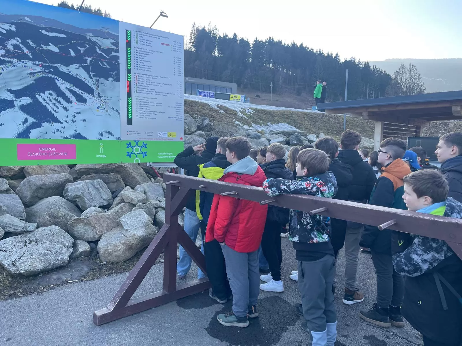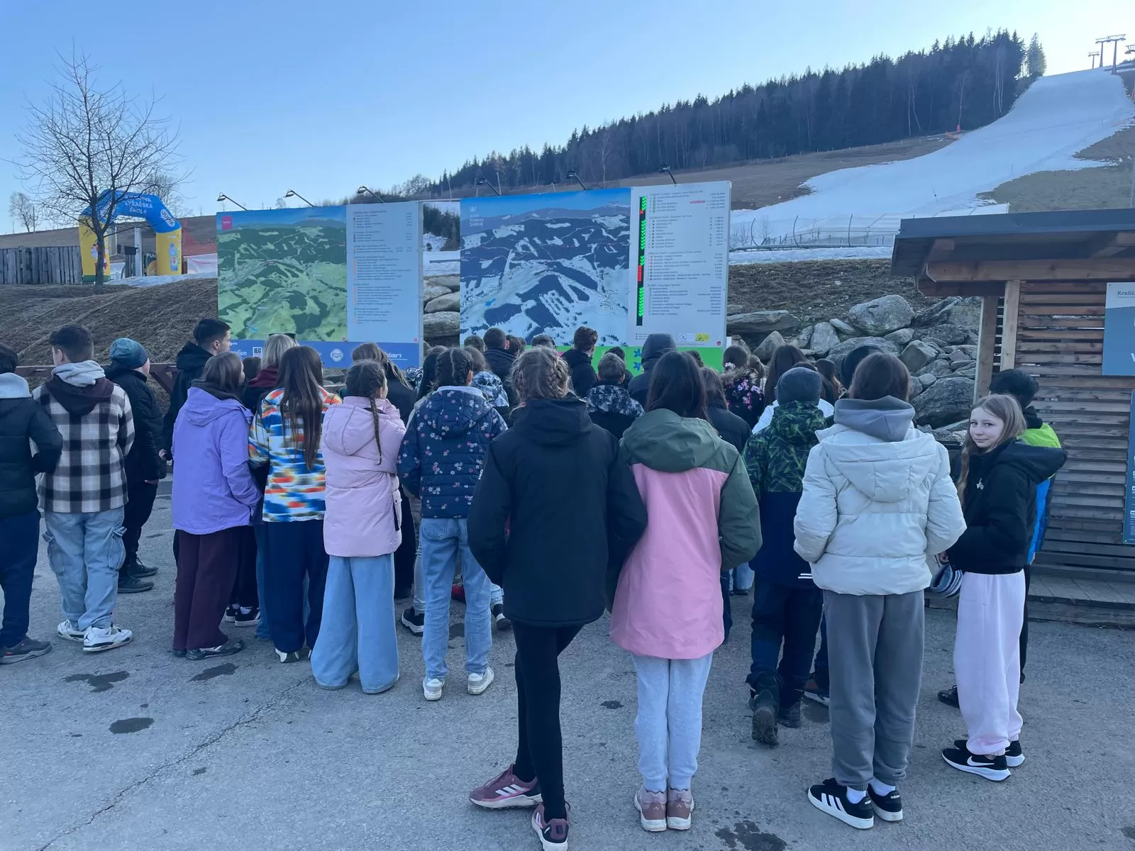 Po téměř třech hodinách cesty jsme šťastně dorazili do cíle a přivítalo nás jaro. Naše úkoly pro dnešní den byly jasné – nejprve se ubytovat, pak se vydat na krátkou procházku po okolí. Hlavní cíl? Obhlédnutí situace na sjezdovce. Večer nás čekala ještě jedna důležitá část programu. Proběhlo totiž důkladné seznámení s lyžníky z Luže. A zdá se, že jsme si padli do noty. Všechny dnešní úkoly jsme zvládli na jedničku a jsme připraveni na zítřek. To už nás totiž čeká to hlavní – první den na sjezdovce. Držte nám pěsti, ať nám počasí i sníh přejí! 🎿