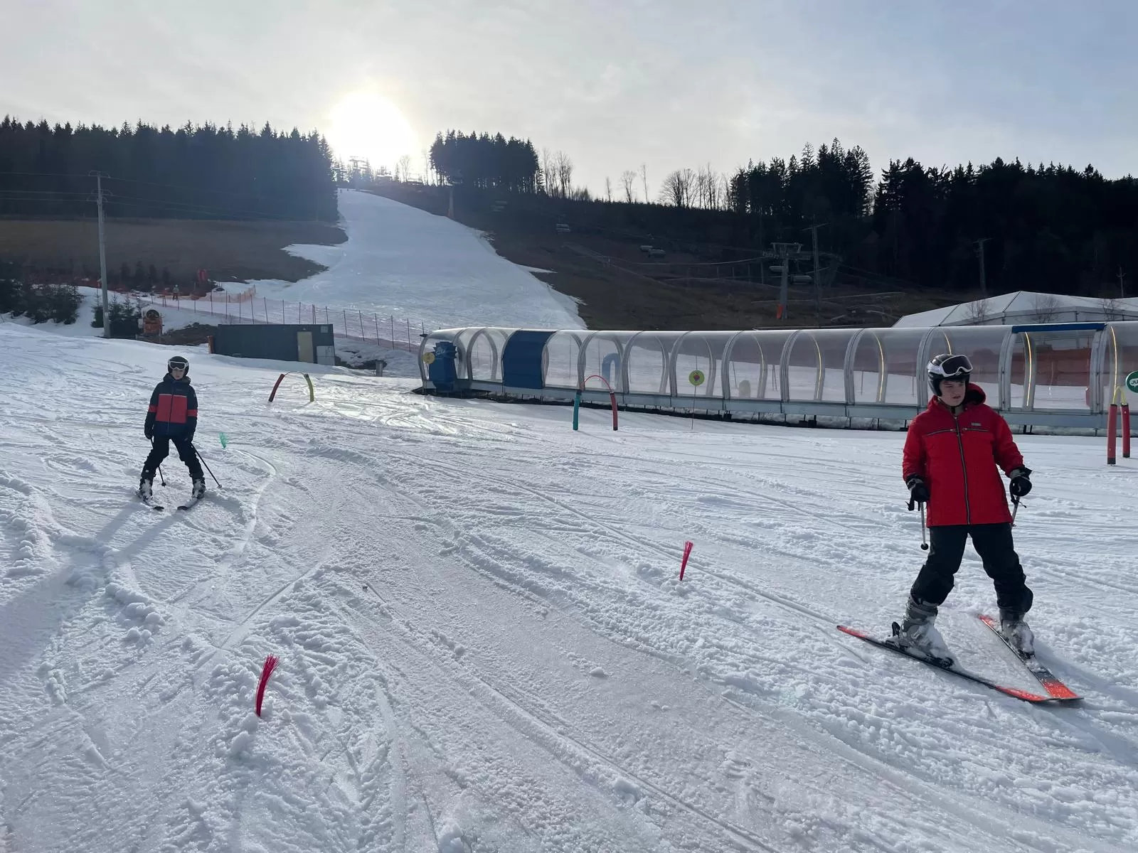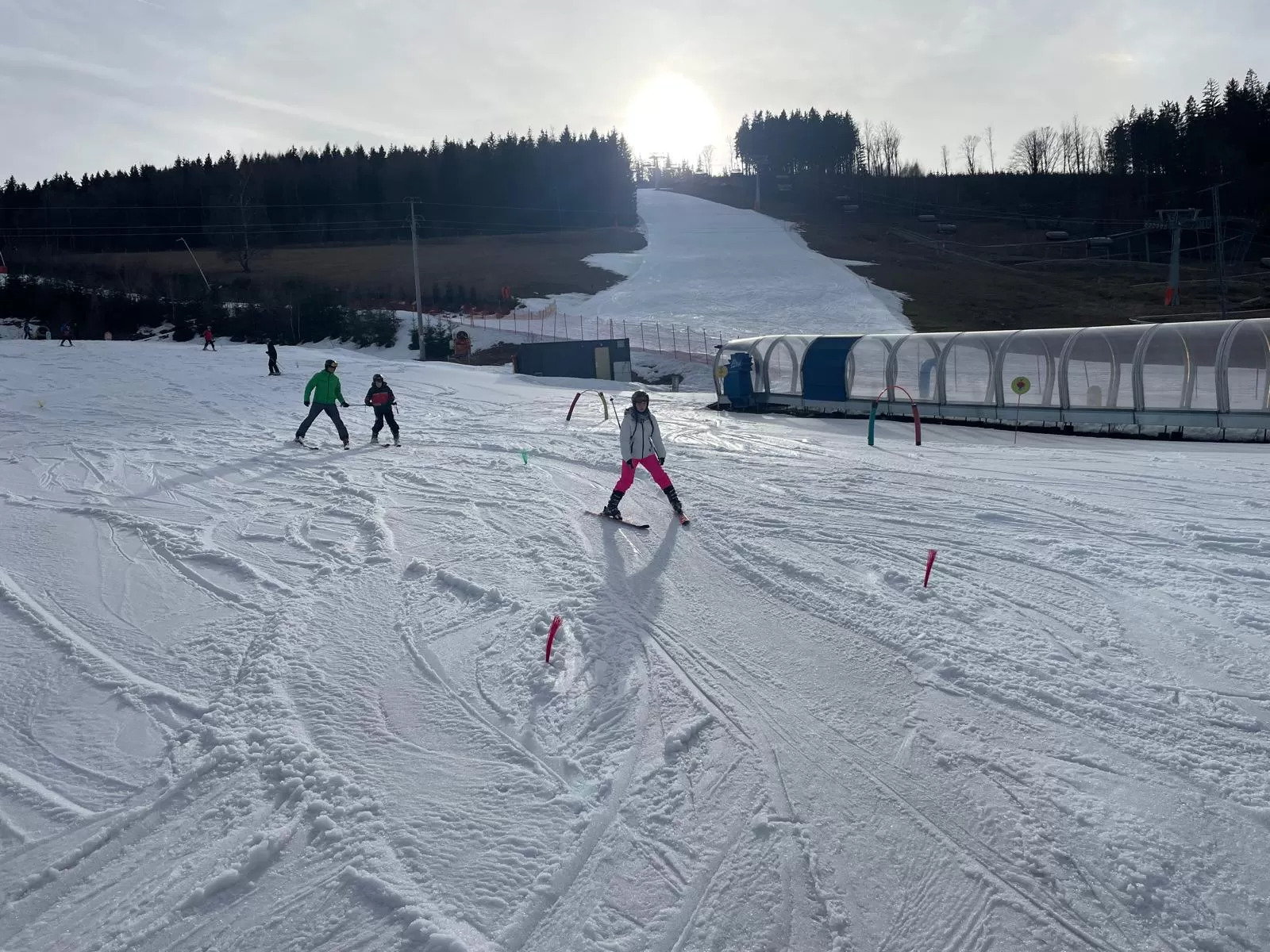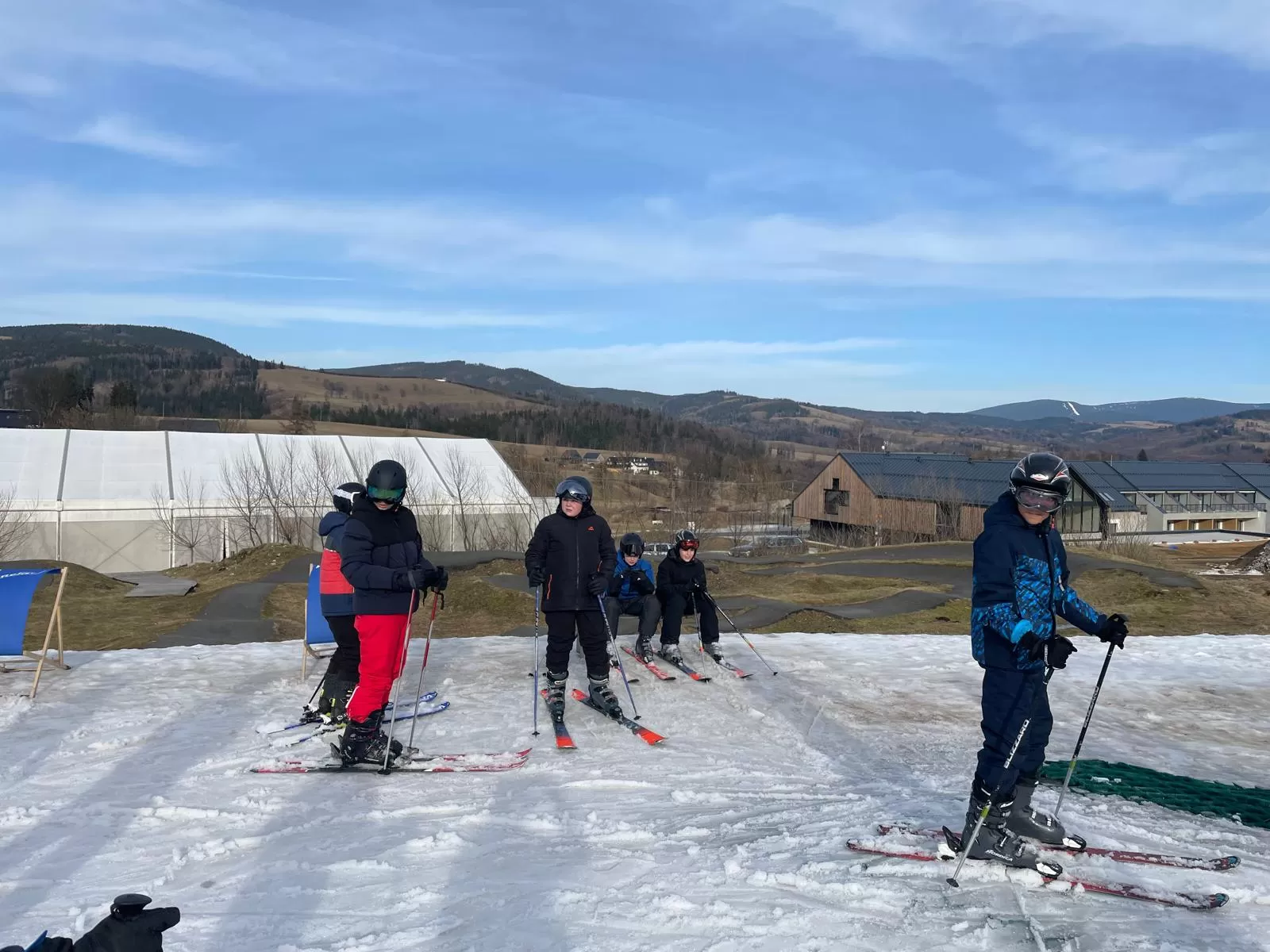 Pohodová neděle nás přivítala sluníčkem, sjezdovka skvěle upravená. Sníh byl fajn, takže se nám lyžovalo opravdu dobře. Ti, kteří stáli na lyžích poprvé, dnes lyžovali s větší jistotou. Zkušenější lyžaři zdokonalovali svou techniku. K obědu jsme si pochutnali na zelňačce a vepřovém mase s těstovinami a omáčkou.