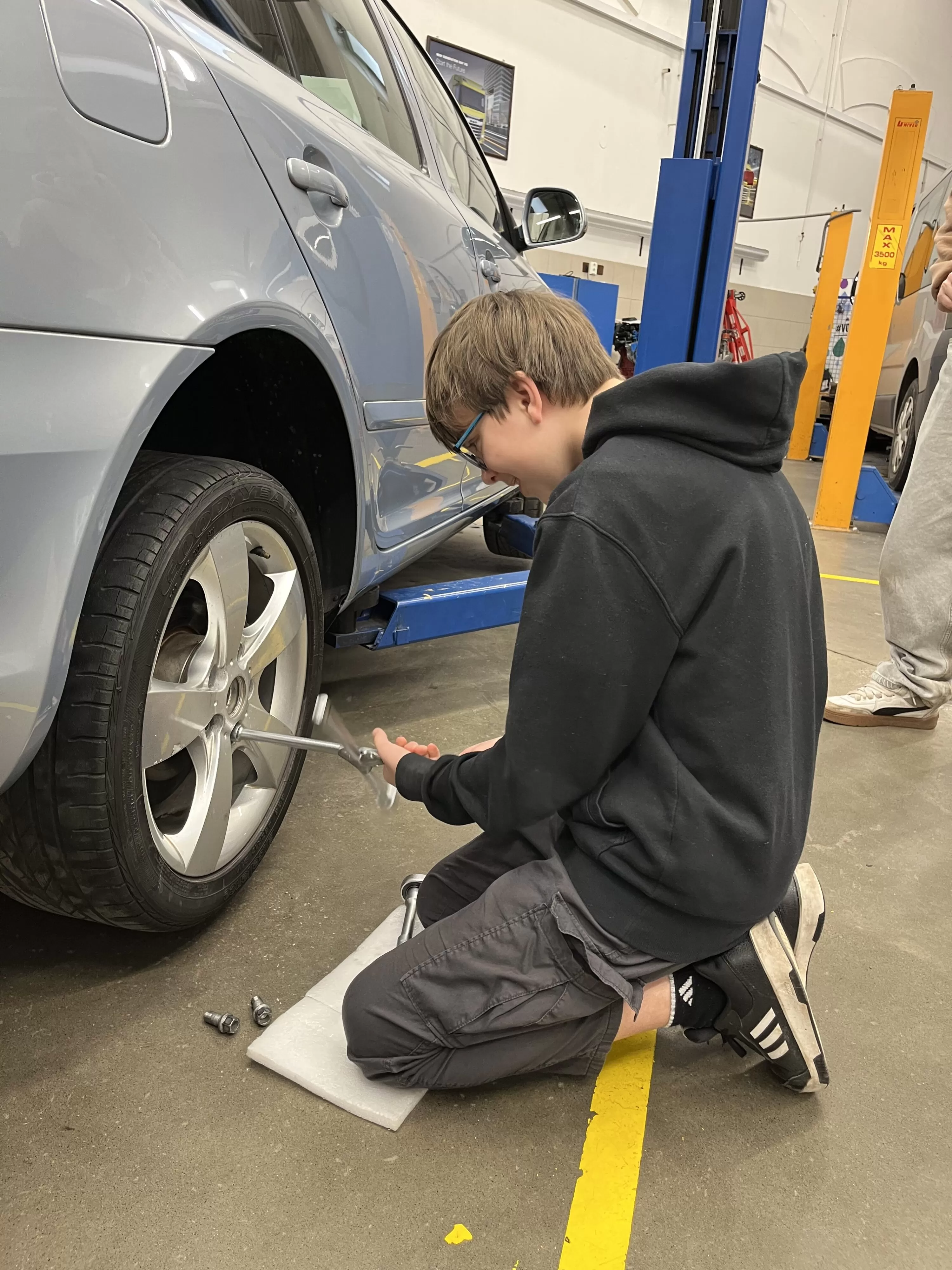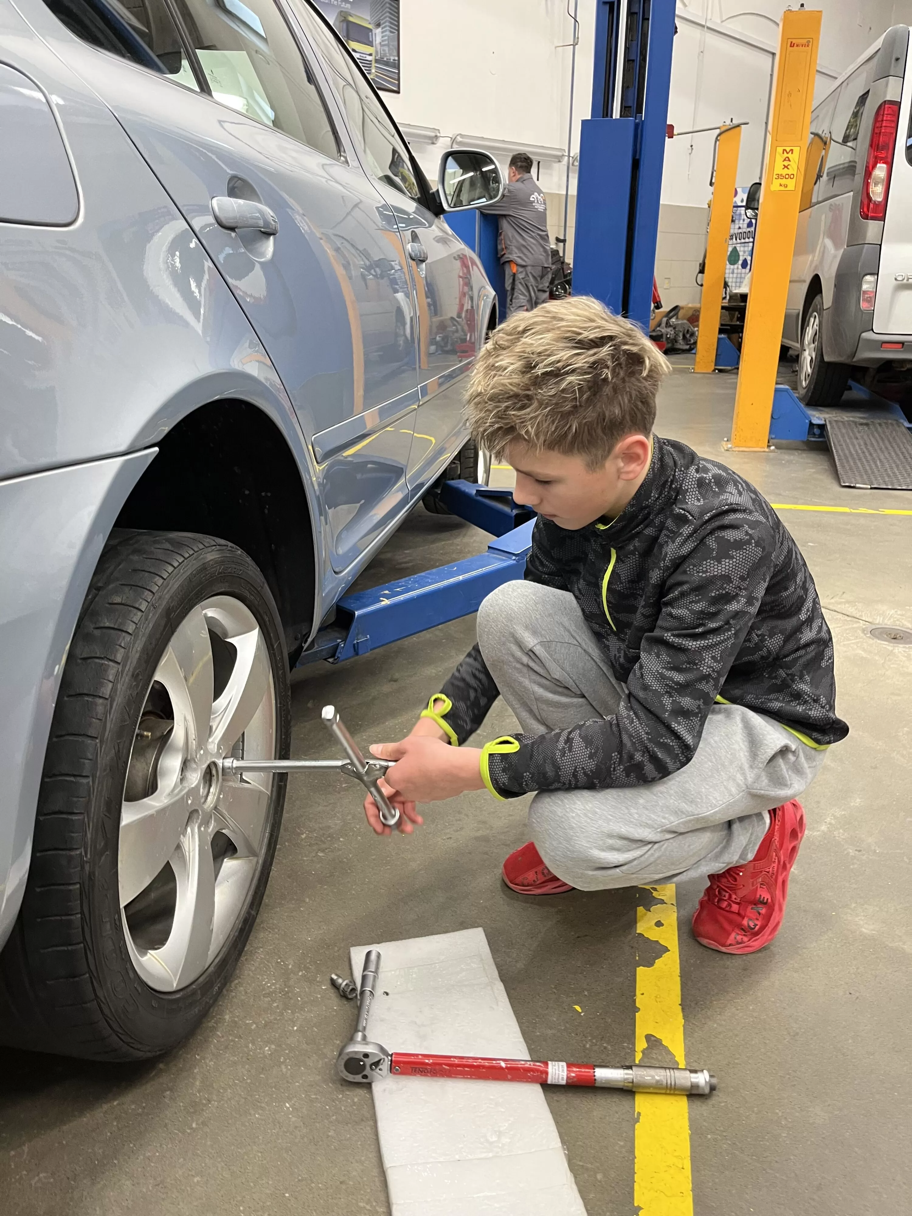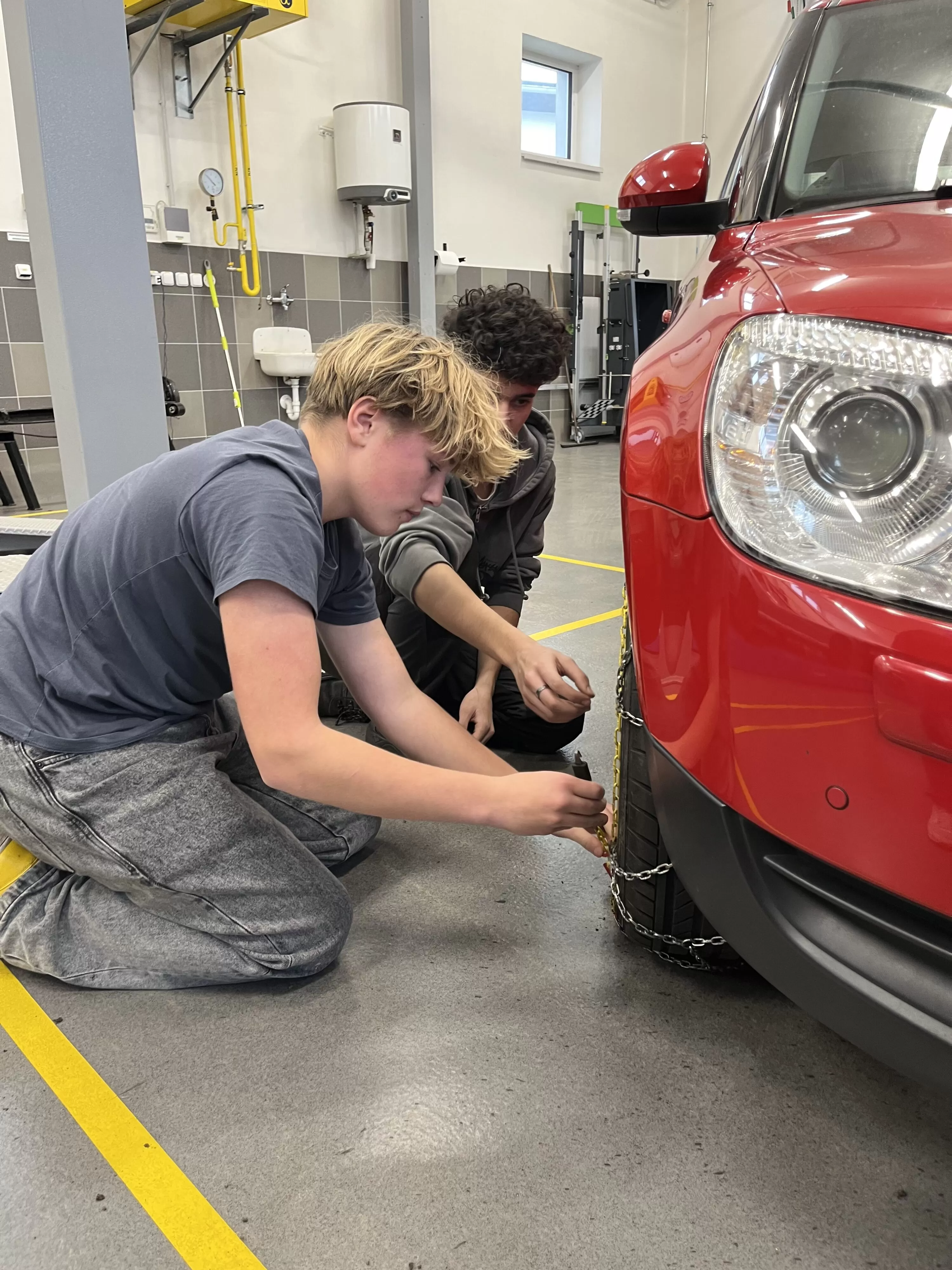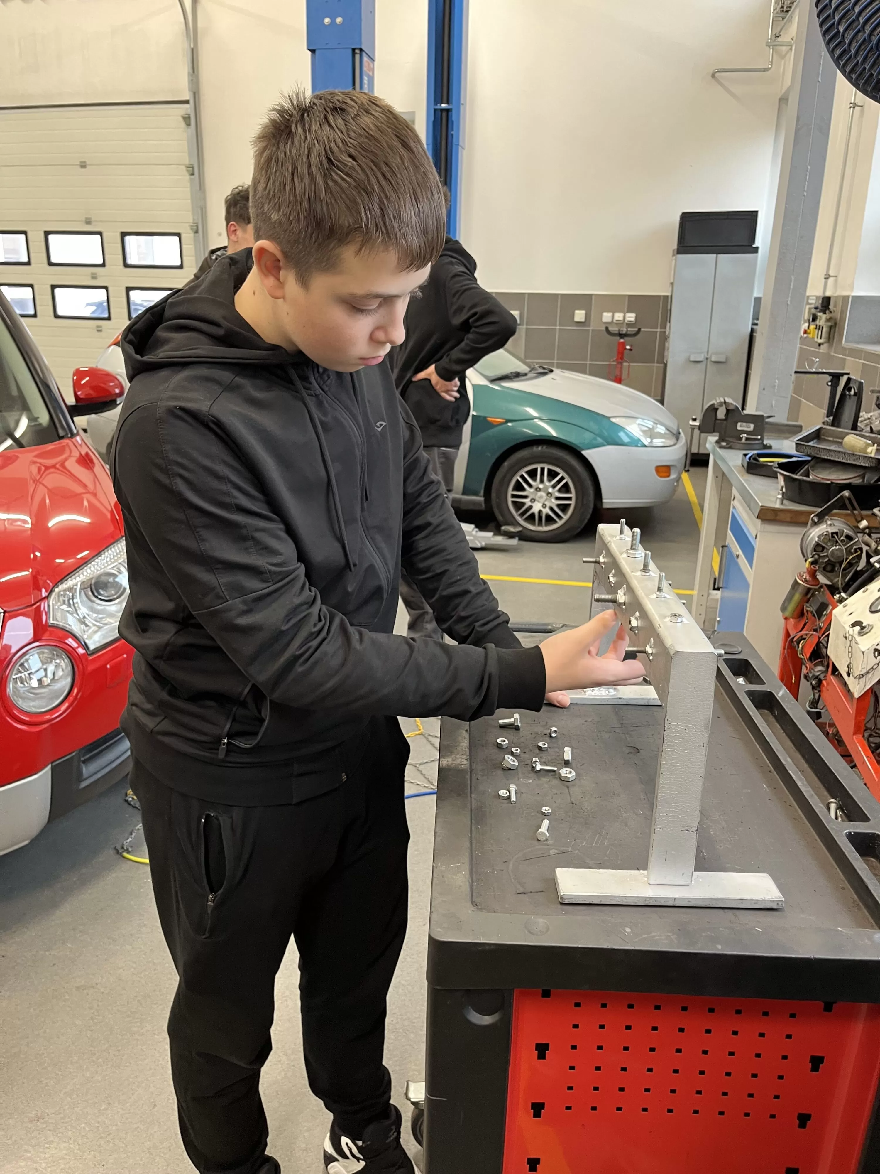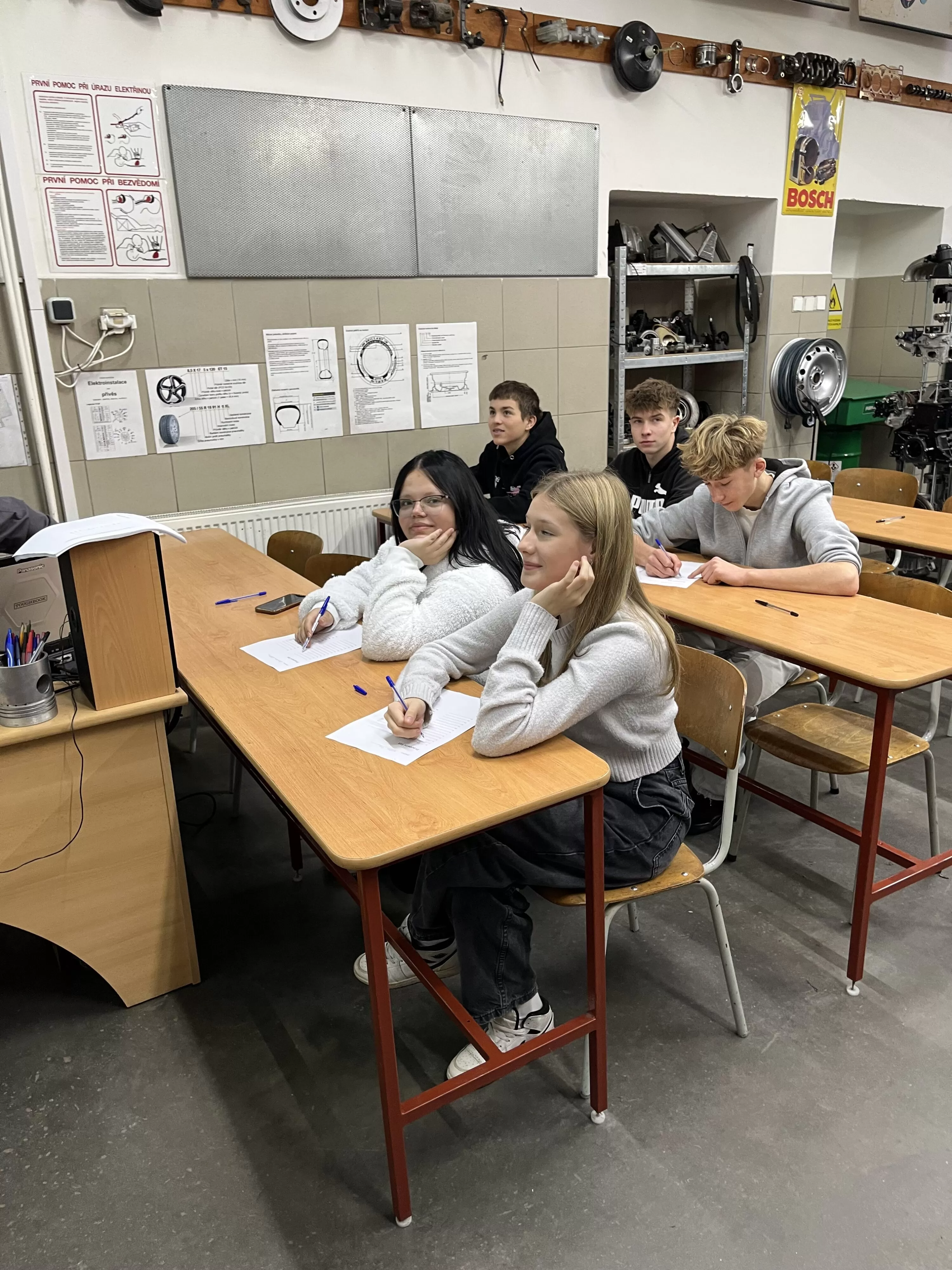 Ve středu 3. prosince navštívili deváťáci a kluci z osmiček holickou automobilní školu. Byla zde pro ně připravena pestrá nabídka aktivit zaměřených na svět aut a techniky. Žáci si vyzkoušeli hádání značek automobilů a řízení RC modelů. Další disciplínou byla výměna kola u auta, která prověřila rychlost i šikovnost. Nechybělo ani nasazování sněžných řetězů, což byla pro mnohé úplně nová zkušenost. Velký úspěch měla také stanoviště s párováním šroubů a matek a jízda na moderním trenažéru. Celé dopoledne probíhalo formou soutěže, kde rozhodovala přesnost, rychlost, šikovnost i znalosti. Tři nejlepší účastníci si nakonec odnesli drobné odměny. A nemyslete si, že automobilní soutěžení je pouze chlapeckou doménou – stříbrnou pozici vybojovala mezi všemi právě jedna z dívek.