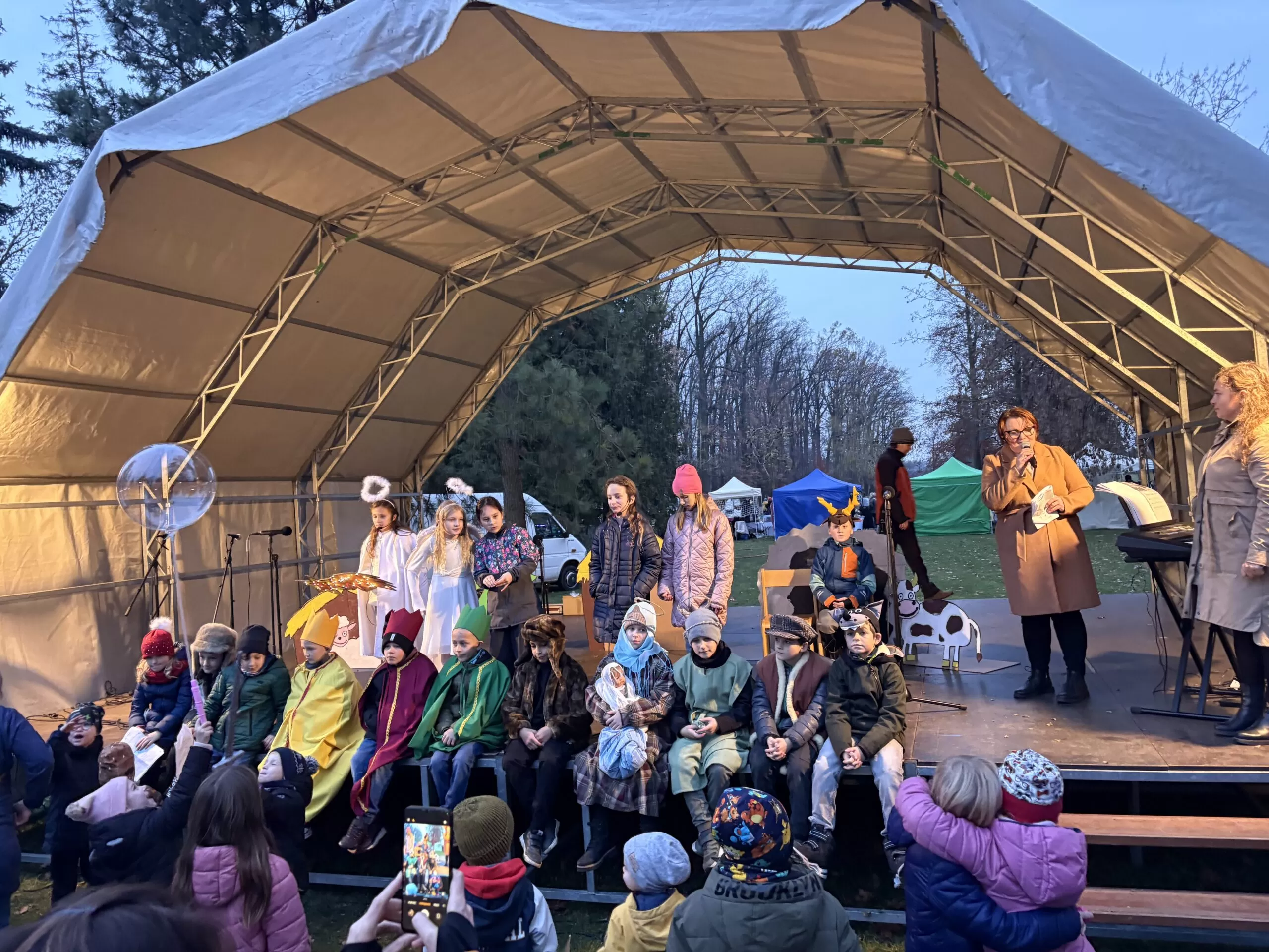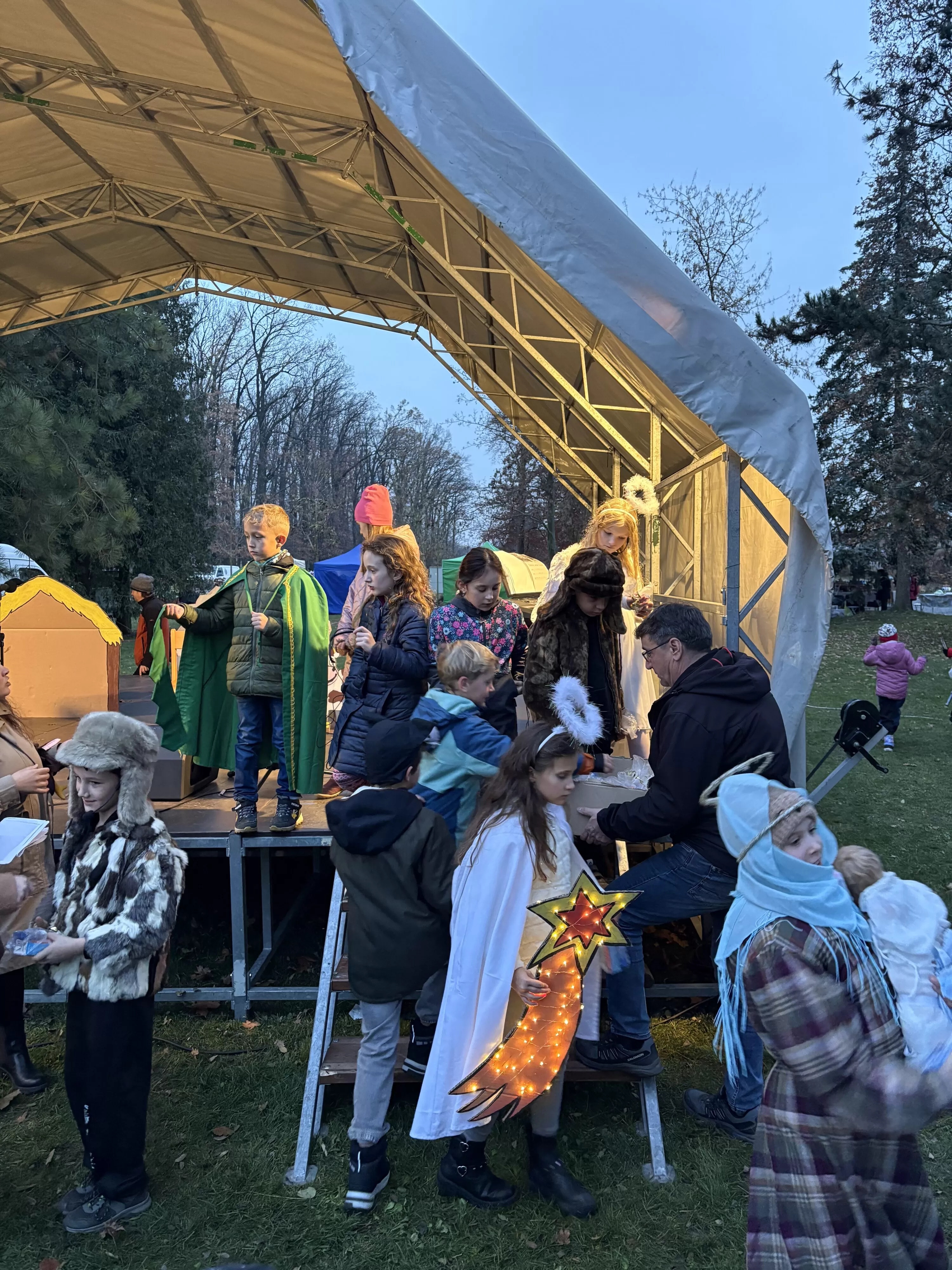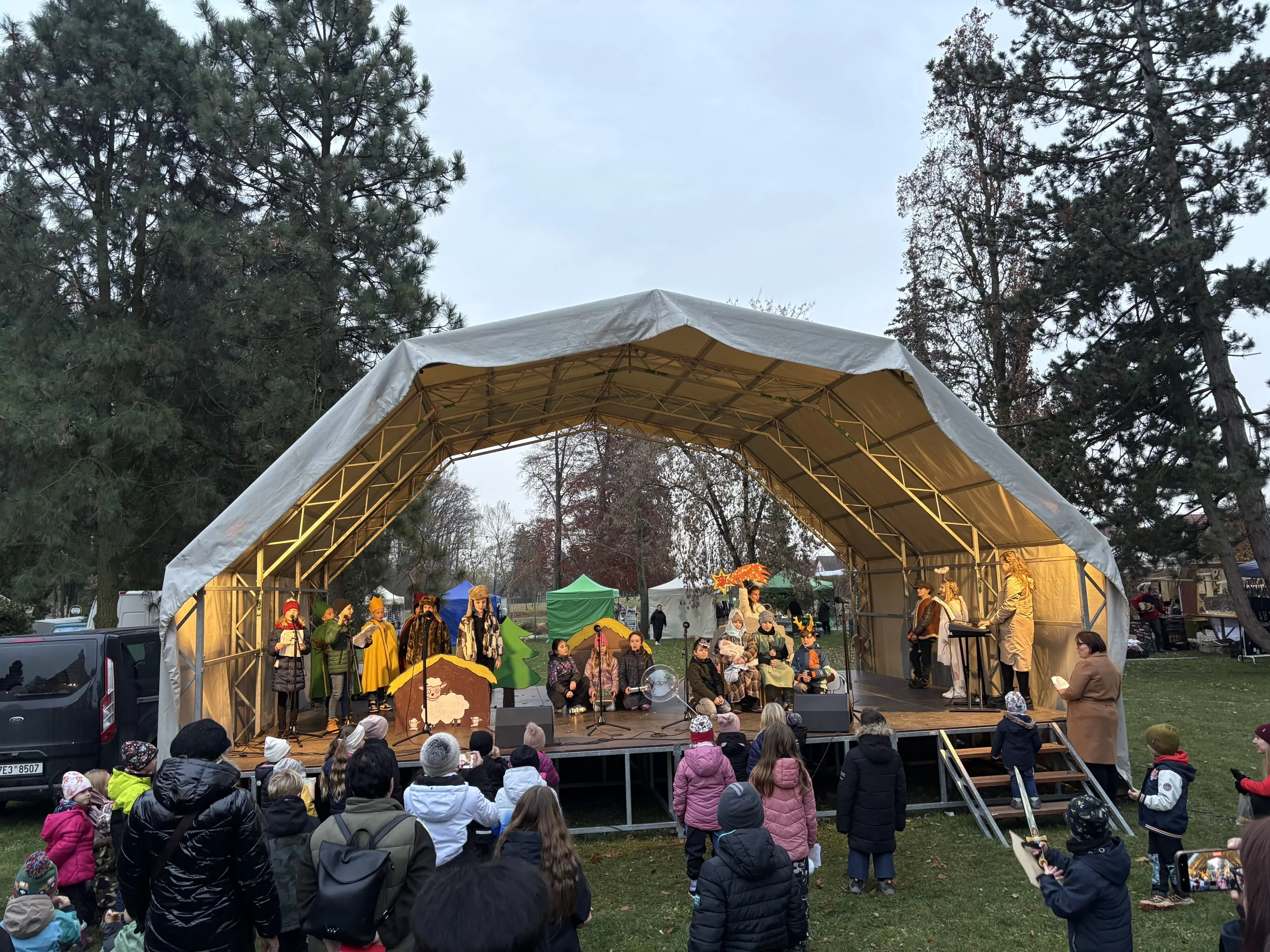 Sobotní podvečer 15. listopadu se v zámecké zahradě nesl ve znamení blížícího se adventu. Naši žáčci vystoupili s krásným vánočním divadlem, ve kterém ztvárnili tradiční příběh o narození Ježíška. V zimní atmosféře mezi světýlky a vánoční výzdobou předvedly, že mají nejen herecký talent, ale i odvahu vystoupit před publikem. Herecké výkony i dětský zpěv koled rozzářily úsměvy na tvářích diváků. Děti se na vystoupení pečlivě připravovaly a bylo vidět, že si svůj velký okamžik opravdu užívají. Publikum je odměnilo dlouhým potleskem a pochvalou za výborné výkony. Děti si odnesly krásný zážitek, na který budou ještě dlouho vzpomínat.