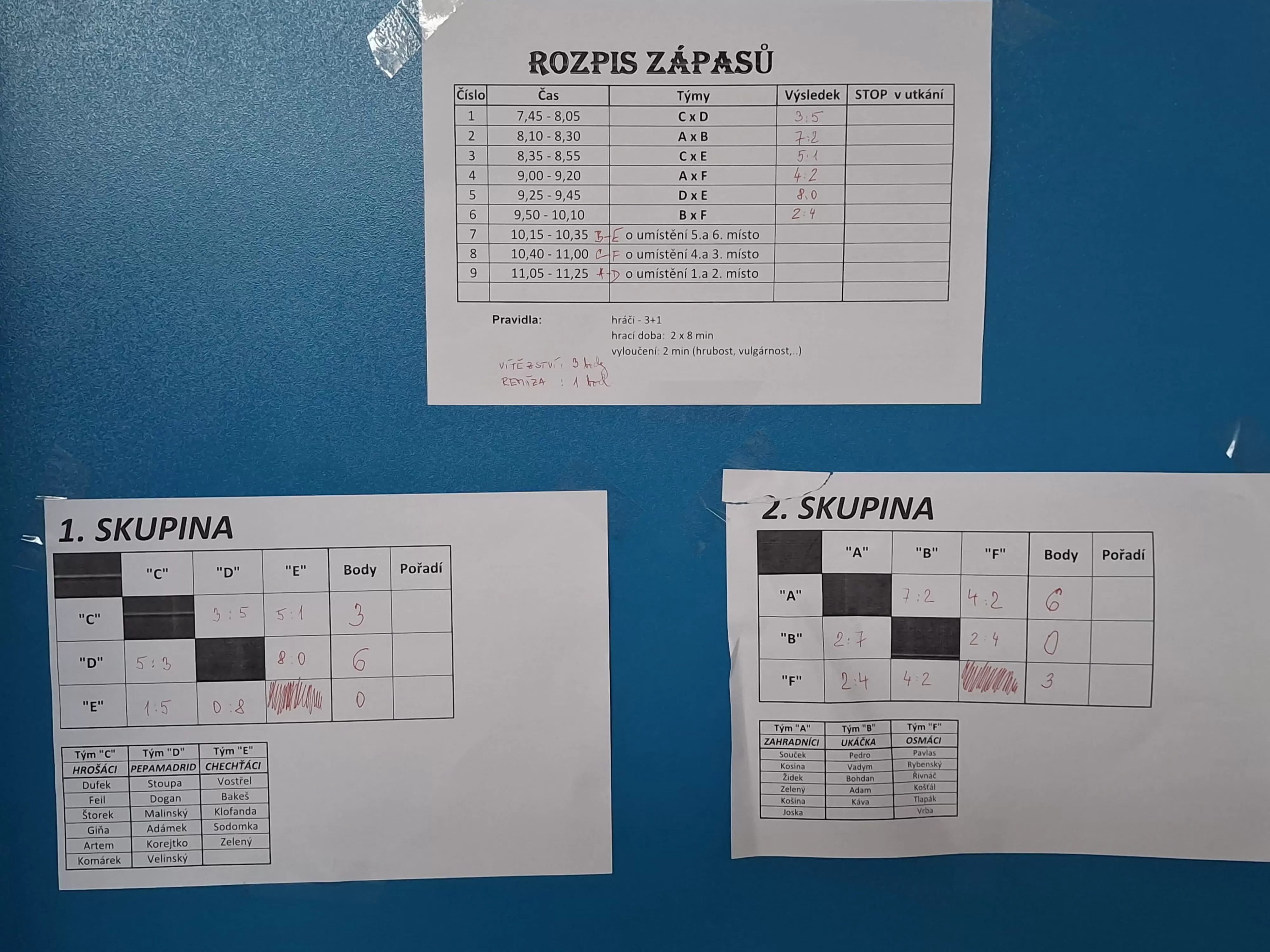 Dnes se ve školní tělocvičně uskutečnil tradiční předvánoční turnaj ve fotbale, do kterého se zapojilo šest družstev. Týmy byly složené vždy ze čtyř hráčů a po celou dobu panovala sportovní atmosféra. Vítězství si zaslouženě odnesl tým nejstarších žáků, kteří prokázali zkušenosti i sehranost. Stříbrnou pozici obsadili šesťáci, kteří bojovali s velkým nasazením až do posledního zápasu. Velkou pochvalu si však zaslouží i nejmladší hráči, kteří skončili na čtvrtém místě po celou dobu turnaje předváděli skvělé výkony. Přestože byli věkově nejmladší, dokázali se prosadit a držet krok se staršími soupeři. Oceňujeme zejména fair play hru, kdy starší hráči respektovali mladší spoluhráče i protihráče.
