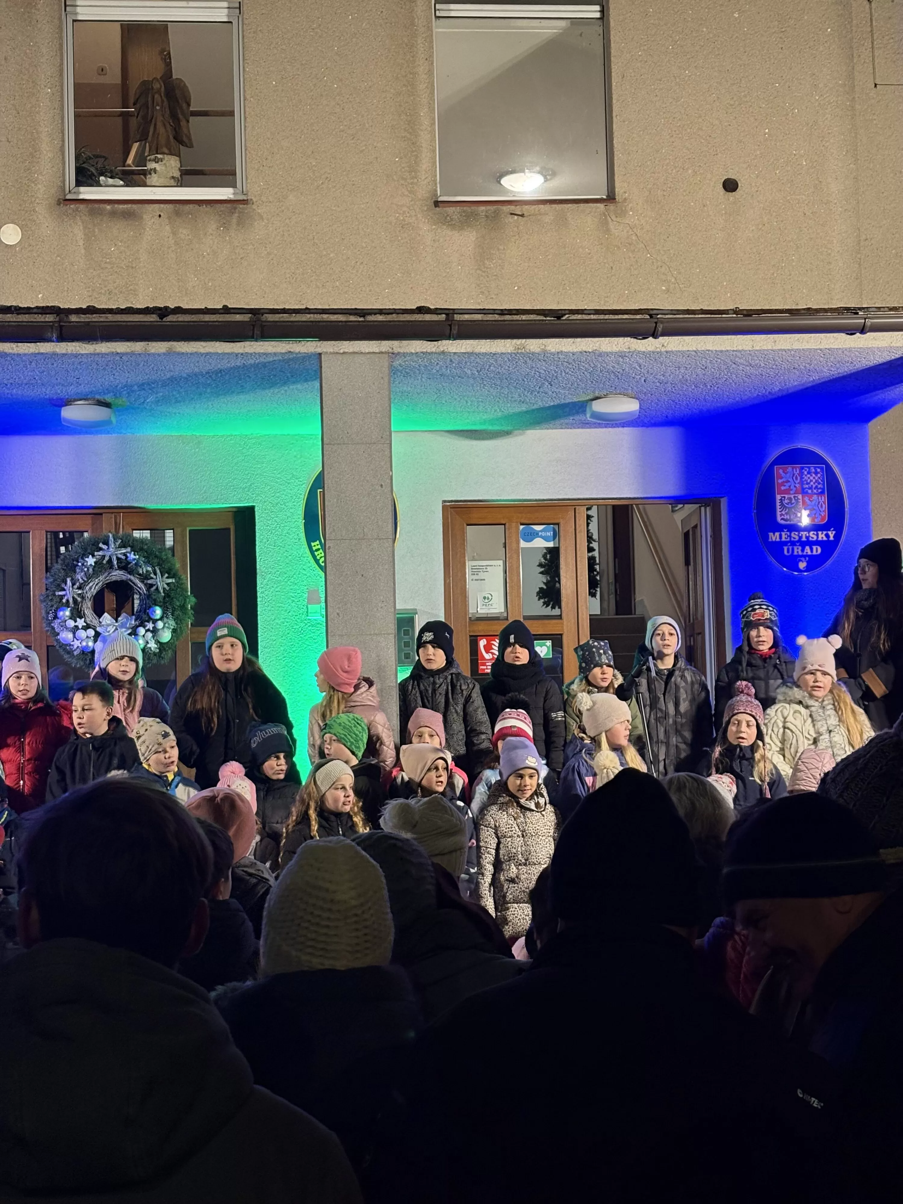 První adventní neděli se malí zpěváčci z první až třetí třídy sešli na schodech městského úřadu, aby svými hlasy přivítali období Vánoc. Zazněly tradiční koledy i oblíbené vánoční písně, které vykouzlily úsměv na tvářích všech přítomných. Atmosféru navíc podtrhlo vystoupení mladých muzikantů, kteří zahráli na žesťové nástroje. Když zpěváčci společně s ostatními přítomnými zavolali: „Stromečku, rozsviť se!“ vánoční strom se rozzářil svými světýlky. Lidé si vychutnávali nejen krásný program, ale také punč, horký čaj a přátelská setkání. Vznikla tak příjemná adventní atmosféra, která k Vánocům neodmyslitelně patří. Celá akce byla krásným začátkem adventu a společným naladěním se na sváteční čas.